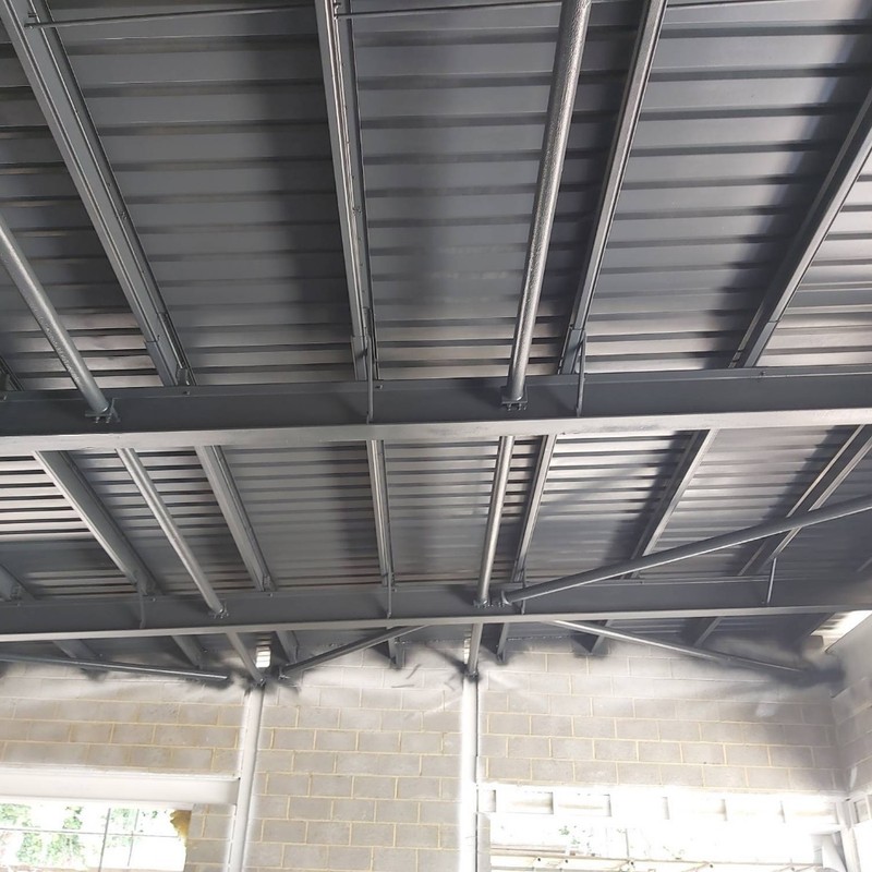 This project involved the application of intumescent spray coatings to the roof structure and exposed structural steelwork. Specialist colour-coded coatings were used to meet the client’s specific aesthetic and compliance requirements.