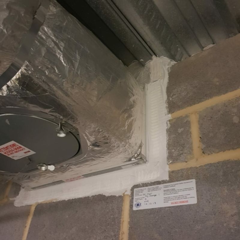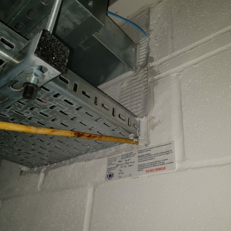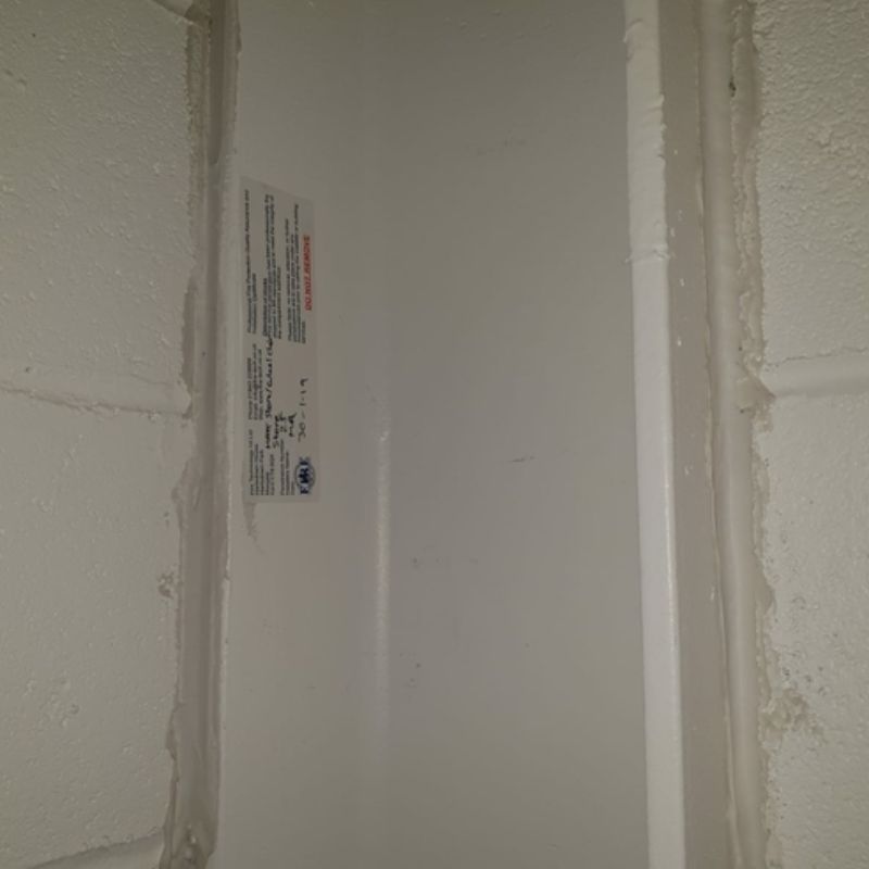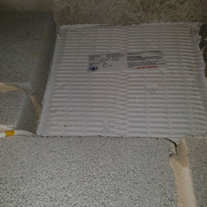 A decorative white top coat was then applied to give the finish our client requested, followed by fire stopping works to the full thickness of wall heads and all service penetrations.