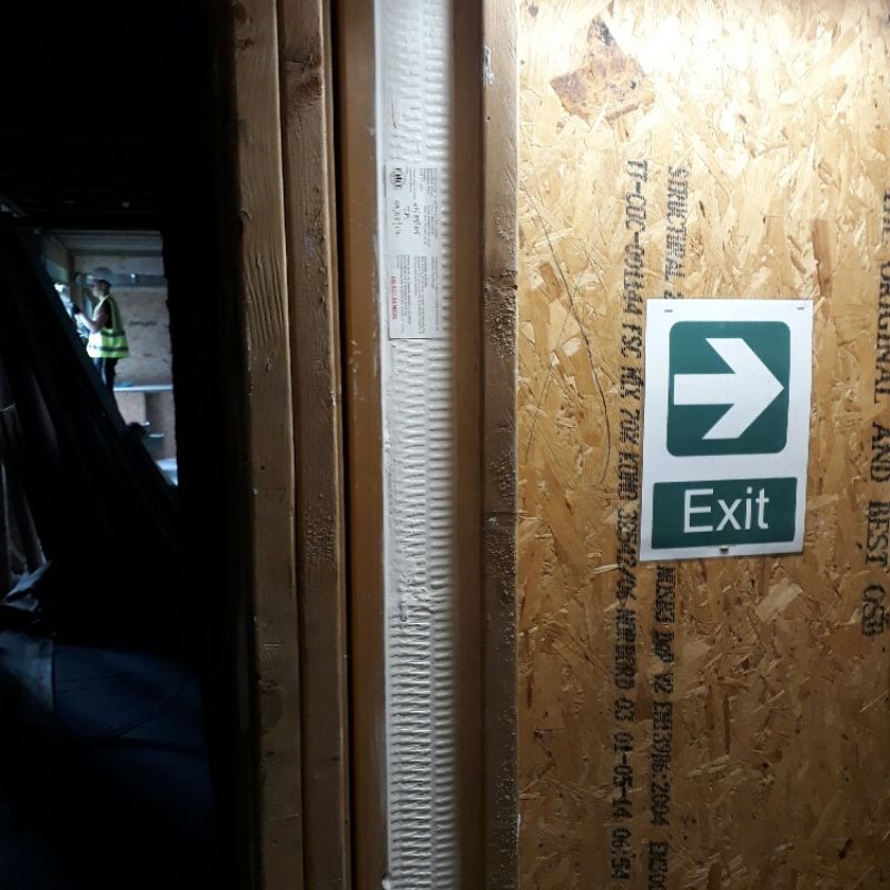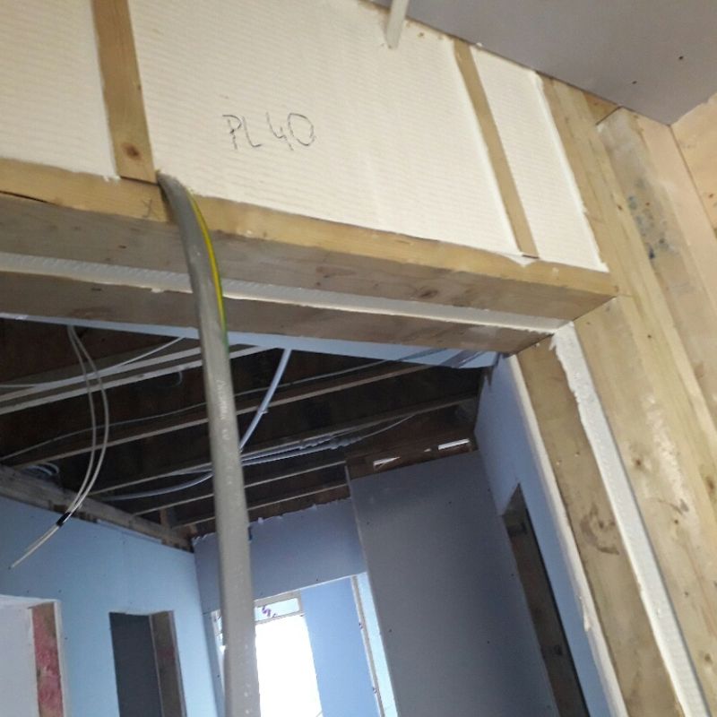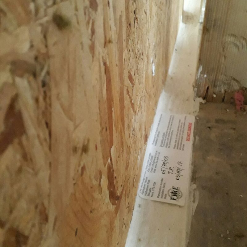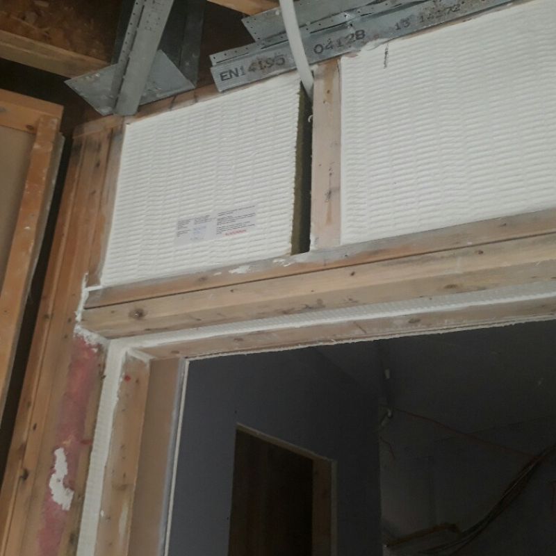 To provide fire collars and/or intumescent wraps to SVP's, trim back expanded "pink foams" to heads of partition walling, door frames and sealing/facing with good quality non shrinking intumescent mastics and sealants.