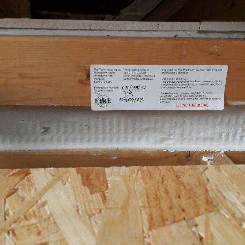 For this project of a 5-storey, timber frame block of 40 apartments, DCB Kent Ltd requested us to provide Remedial fire stopping / upgrading of existing fire protection - fire collars/ intumescent wraps to vent grilles, ducting and the like that penetrate the suspended fire ceilings within each unit.